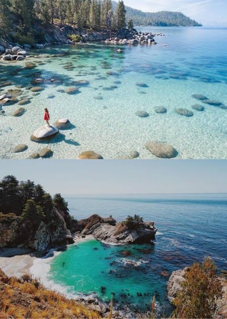 Drive along the stunning Pacific Coast Highway and be captivated by the rugged beauty of Big Sur. Marvel at the dramatic cliffs, pristine beaches, and coastal redwoods that make this stretch of California’s coastline a scenic wonder.9. Lake Tahoe: